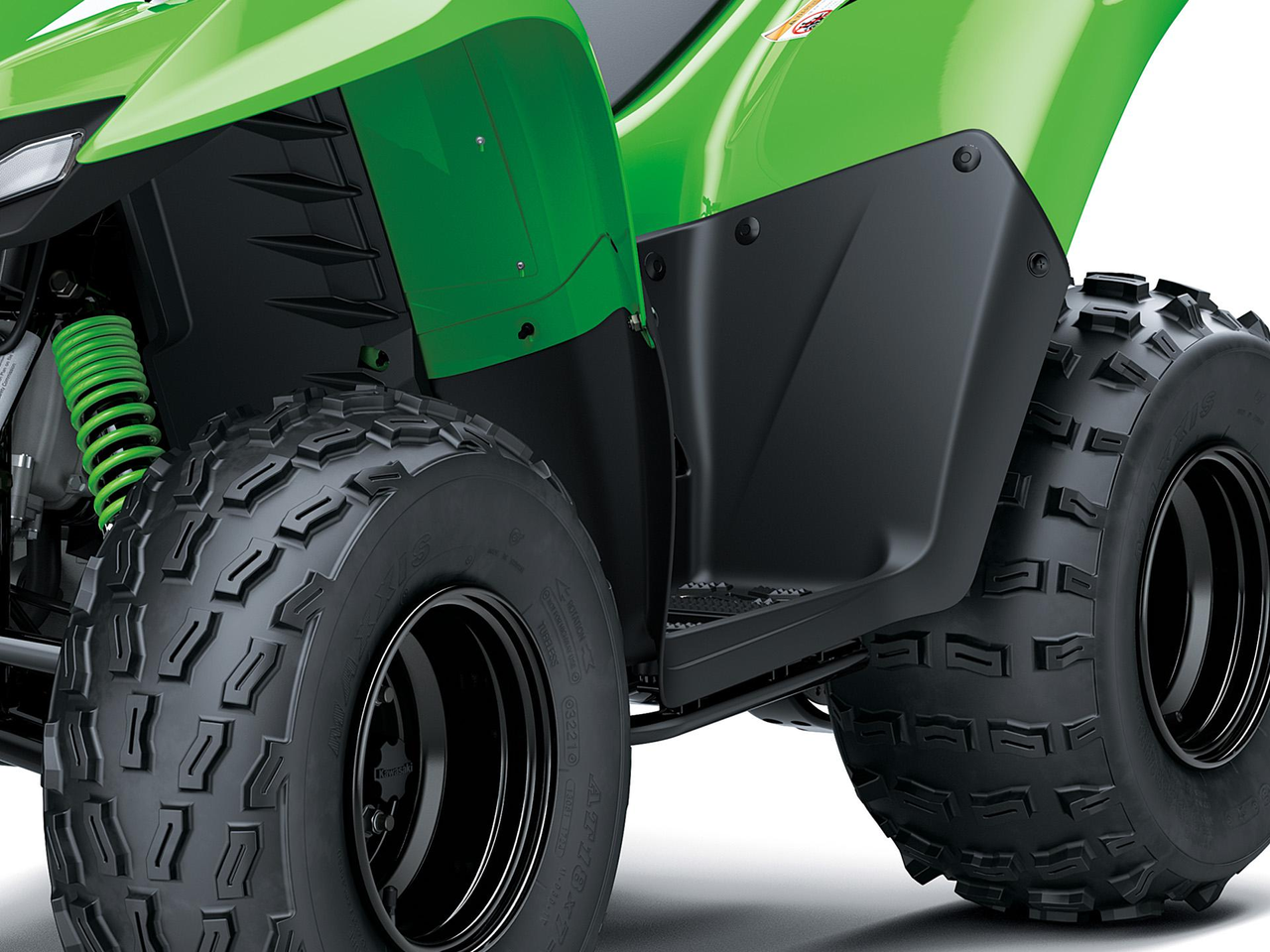 Το πιο δυναμικό νέο στυλ μεταμορφώνει αυτά τα παιδικά μοντέλα ATV, προσδίδοντάς τους μια πολύ πιο σοβαρή εμφάνιση σε σύγκριση με τα προγενέστερα που παρέπεμπαν περισσότερο σε παιχνίδι. Η ισχυρή σύνδεση με την οικογένεια KX συμβάλλει στη σπορ, επιθετική όψη ενώ εξασφαλίζει την άμεση αναγνωρισιμότητά τους ως μοντέλα Kawasaki.