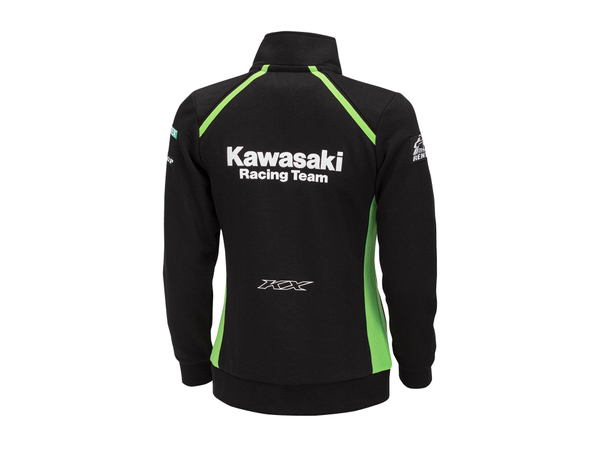 Kawasaki MXGP team's green and black replica zipped sweatshirt with zipped outer pockets, standup collar and ribbed hem and cuffs