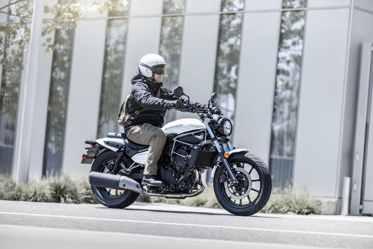 Based around the concept of “Just Ride”,  and equipped with Kawasaki’s new parallel-twin, four-stroke mid-capacity engine (that has also been tuned for its role in the new Z and Ninja 500 models), the Eliminator 500 displays long, low drag strip and urban street styling  within an easy to ride A2 licence friendly package.