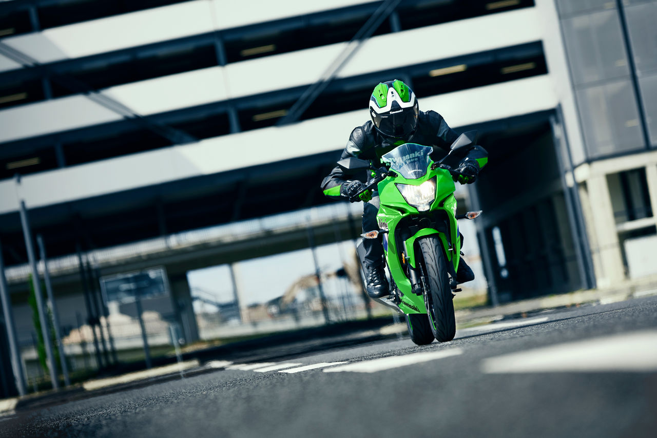 The Ninja 125 has bodywork redolent Ninja machines racing machines and is equipped with a 15PS (11KW) engine with controllability and classic Ninja urge throughout the rev range. Reassuring around town and with great low to mid-range flexibility, the rider feels the benefit of Supersport ergonomics (that include a 20mm higher seat as an ERGO-FIT accessory option) and a cockpit view that encompasses all-digital instrumentation. Add Uni-Trak rear suspension, ø37 mm telescopic front forks plus dependable ABS brakes and the Ninja 125 is sure to be at the head of many riders’ wish list; and justifiably so.
