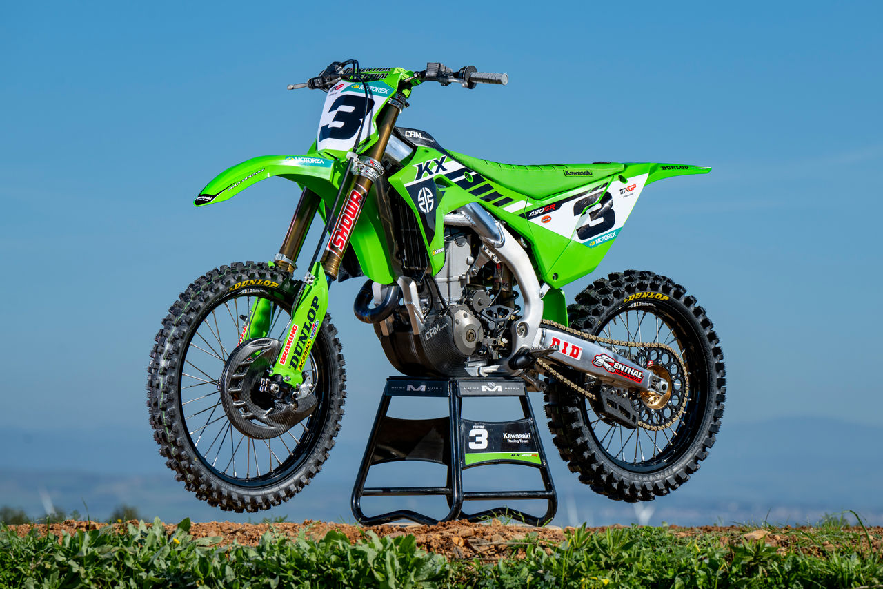 Fully supported by the formidable Japanese manufacturer in terms of race machines plus technical and engineering personnel, it is the honour of the team to field a widely updated KX machine in 2024; the very latest KX450-SR which has a direct connection to the  retail machines are based and sold in Kawasaki dealerships.