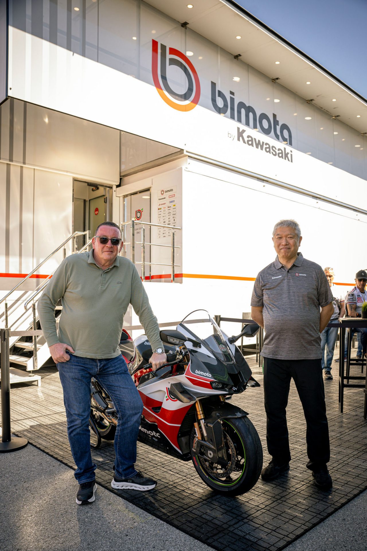 Assigned machine number 22 to mirror the racing number used by Lowes, Simon attended the recent Portimao WorldSBK race and a bimota brand presentation hosted by Kawasaki Portugal examining a KB998 Rimini and to meet Chairman of the Board of bimota, Mr Shigemi Tanaka.